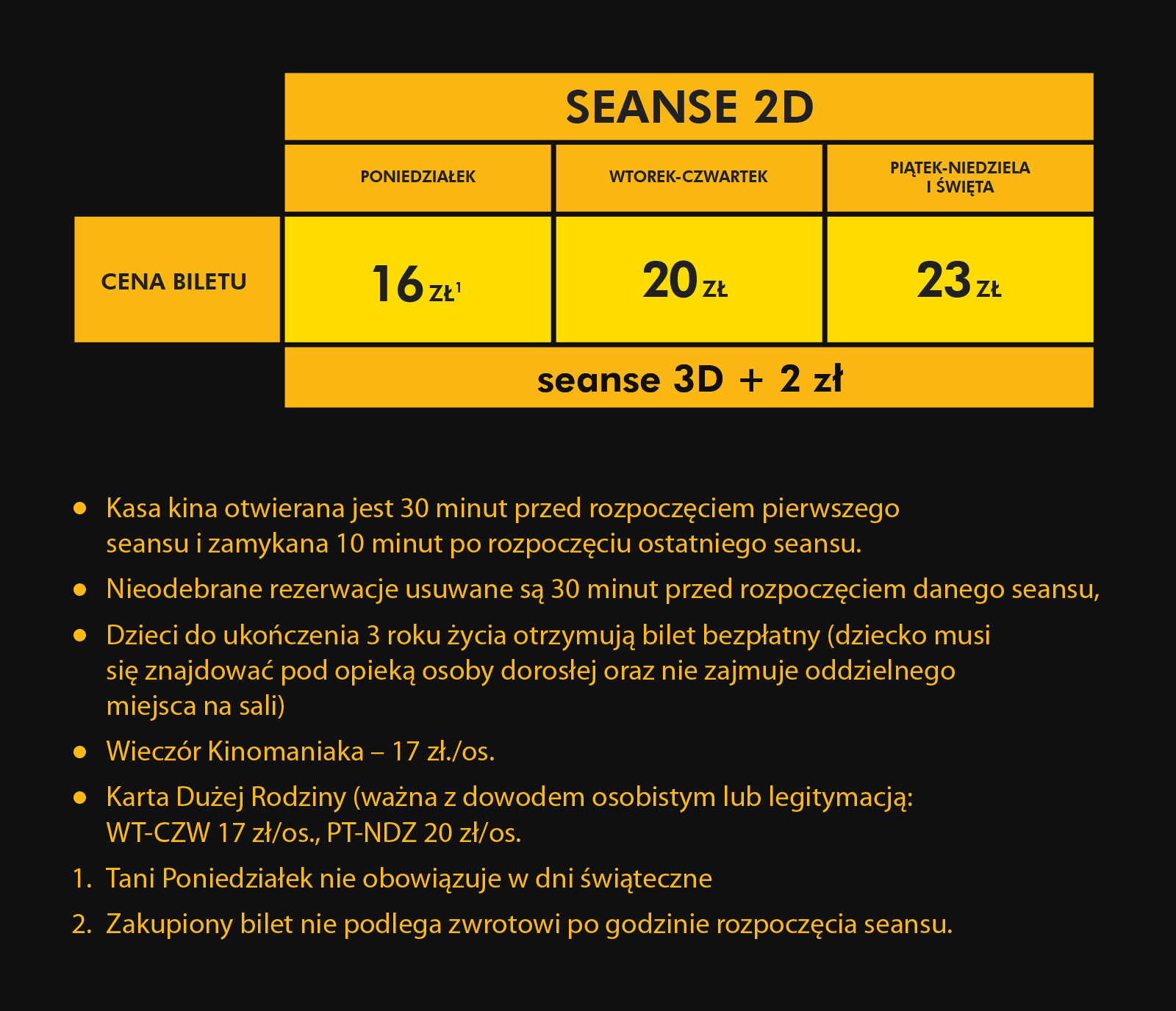TANIE PONIEDZIAŁKI - Bilety na seanse tylko 16zł.