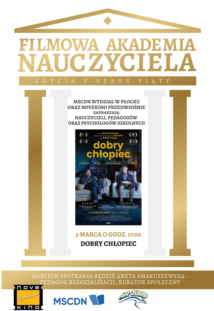 NoveKino Przedwiośnie w Płocku wraz z MSCDN zaprasza nauczycieli, pedagogów oraz psychologów szkolnych na bezpłatne pokazy filmowe. Seanse będą połączone z rozmowami z zaproszonymi gośćmi.