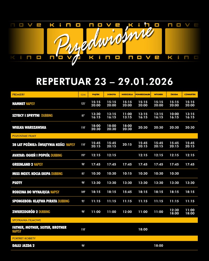 Szczegóły na stronie kina w zakładce REPERTUAR