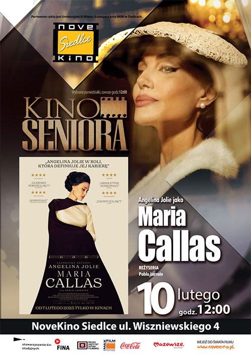 Nagrodzona Oscarem Angelina Jolie jako Maria Callas - nazywana „primadonną stulecia”, najsłynniejsza i najbardziej uwielbiana śpiewaczka operowa świata. To zahaczający o najważniejsze momenty w życiu diwy film o wielkich miłościach: do mężczyzn, do kariery, do śpiewu. Nagrodzona owacjami na stojąco podczas światowej premiery na Międzynarodowym Festiwalu Filmowym w Wenecji „Maria Callas” została wyreżyserowana przez specjalistę od ekranizacji kobiecych biografii Pablo Larraína, nagradzanego w Cannes i Berlinie twórcy obrazów „Jackie” o Jacqueline Kennedy oraz „Spencer” pokazującego historię księżnej Diany.
