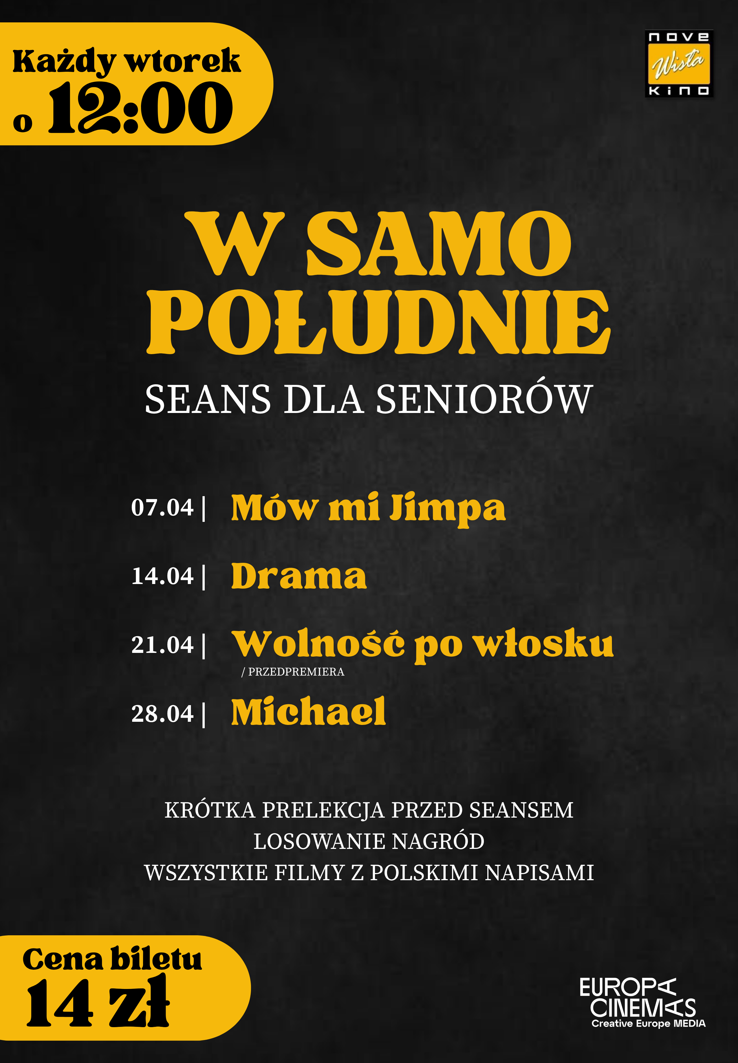 “W Samo Południe: seans dla seniorów” to wyjątkowy cykl filmowy, który odbywa się w kinie Wisła nieprzerwanie od wielu lat.