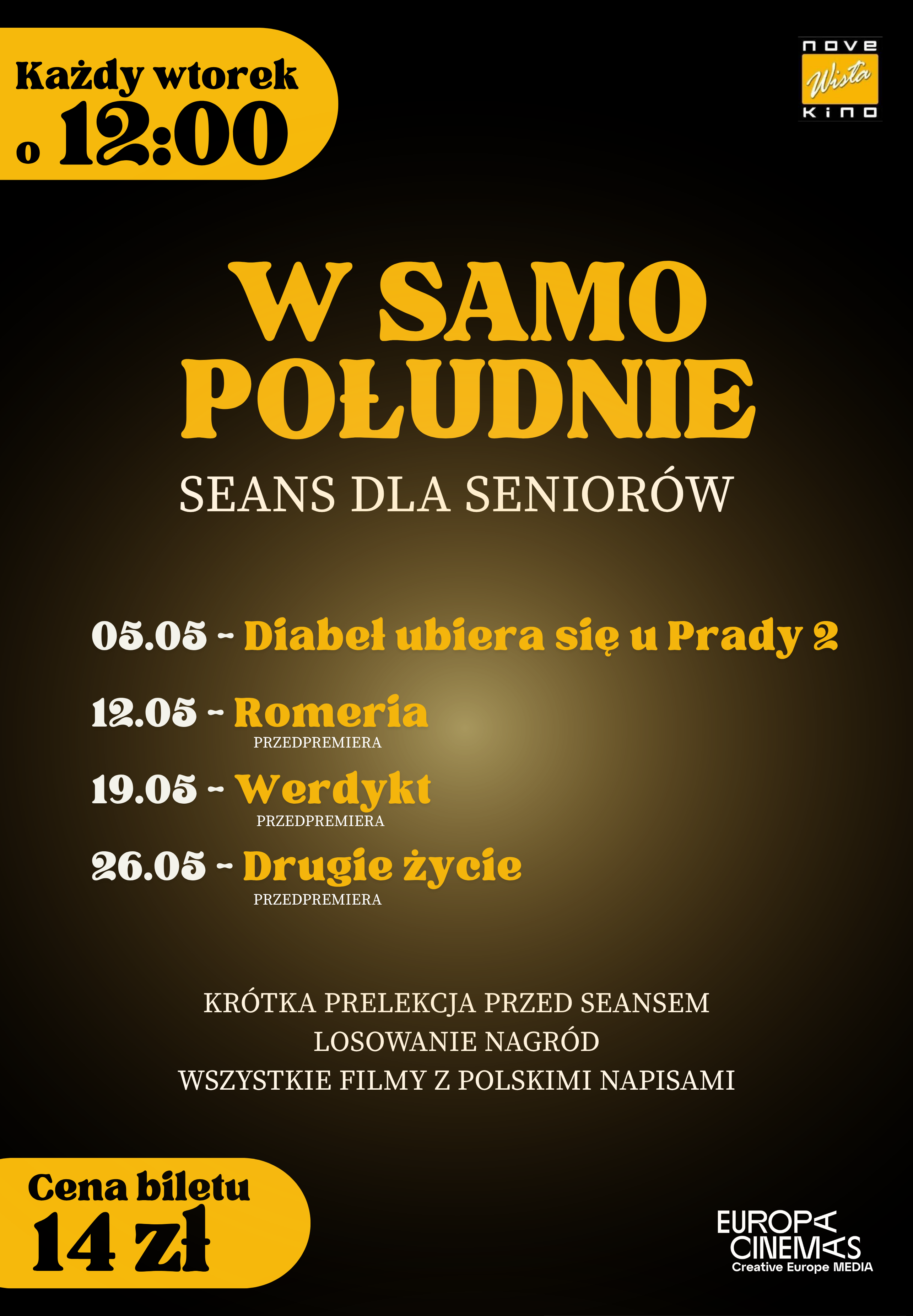 “W Samo Południe: seans dla seniorów” to wyjątkowy cykl filmowy, który odbywa się w kinie Wisła nieprzerwanie od wielu lat.