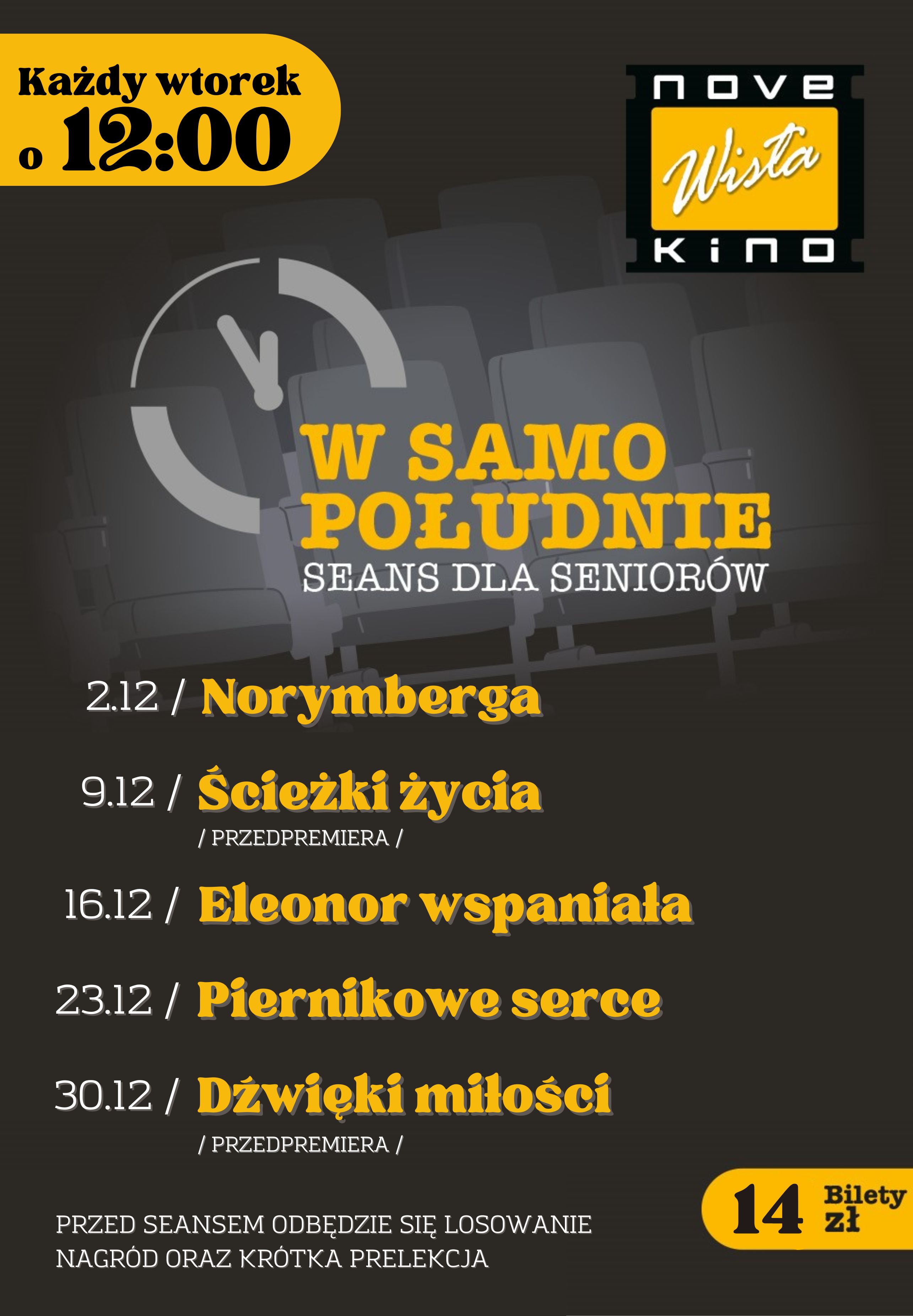 bilety w cenie 14 zł tyko dla seniorów, pozostałe osoby płacą za bilet wg cennika tygodniowego